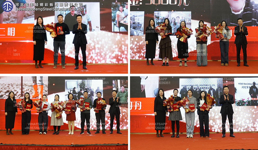 On January 18, 2026, Hebei Baofeng Steel Structure Co.,Ltd 2025 Annual Summary and Awards Ceremony was held grandly. The company's owner, management, and all employees gathered together to review the achievements of the past year, honor outstanding individuals, and look forward to a new journey. The atmosphere was festive, enthusiastic, and inspiring.