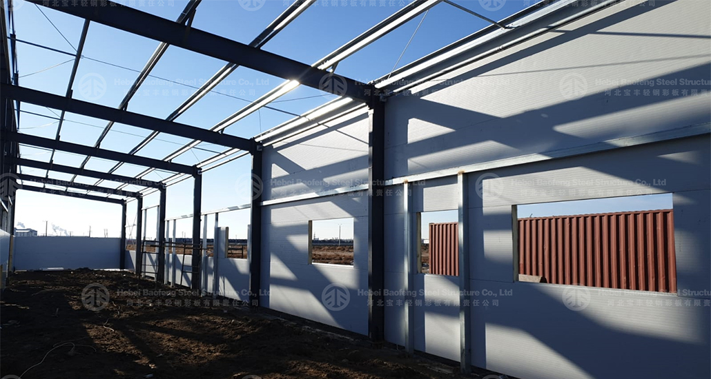 Modularity: The building can be easily extended in length, width, or height by adding more steel frames and panels.